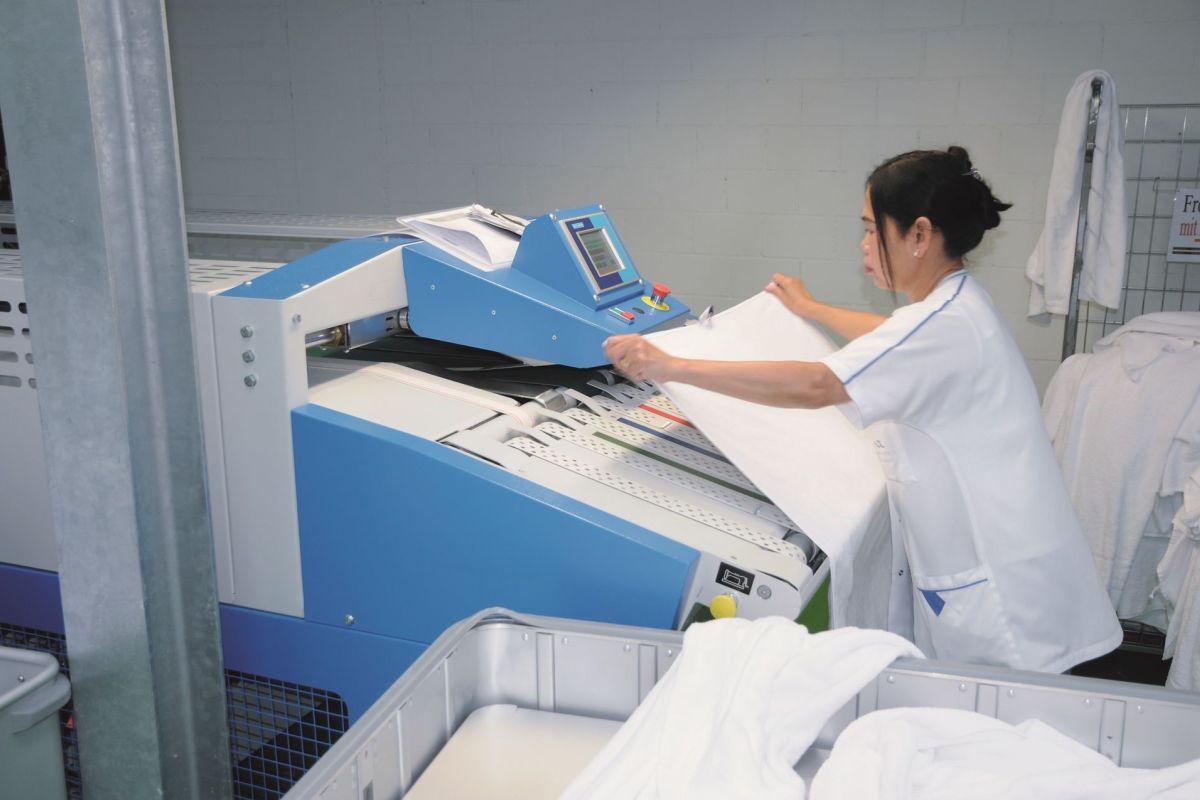 - die getrocknete Wäsche mithilfe von Maschinen bügeln, dämpfen und falten, bevor diese verpackt und ausgeliefert wird
