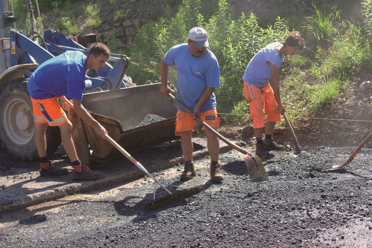 - mithelfen, Beläge der Strassen zu verlegen und mit Walzen zu pressen, zum Beispiel mit Maschinen und Werkzeugen Material wie Schotter und Asphalt einsetzen